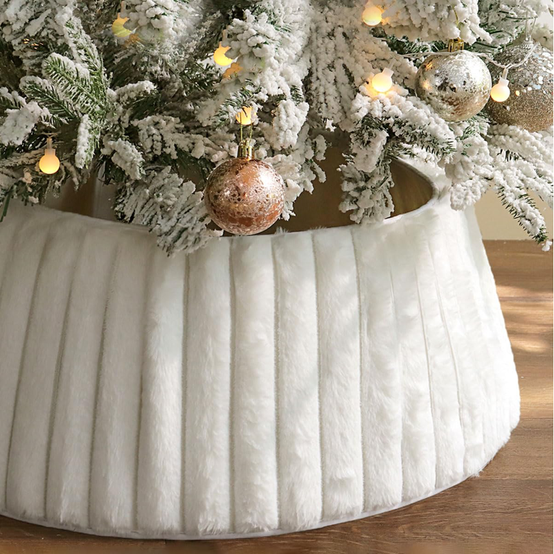 Stripe Plush Faux Fur Christmas Tree Collar Skirt
