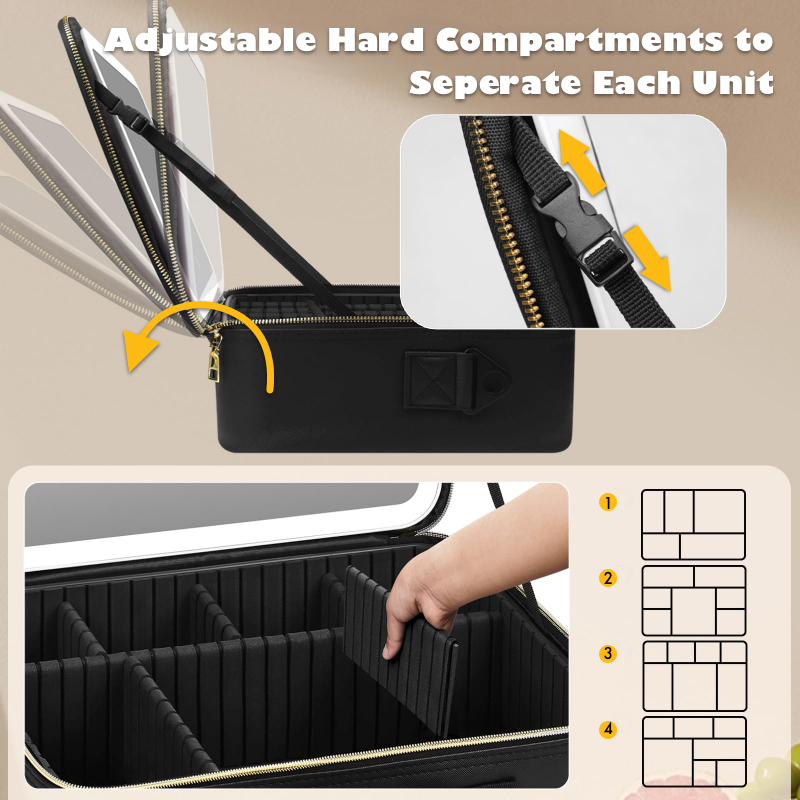 Roomy with Multi-Section Storage – Designed with various compartments, adjustable dividers, and brush holders to fit all your skincare and cosmetics neatly.